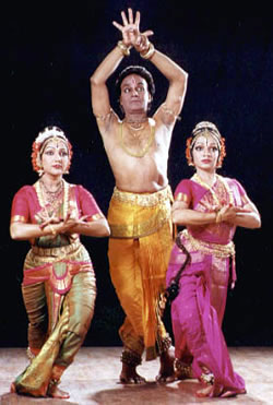 Kuchipudi is unique among the Indian classical dance styles. It uses fast rhythmic footwork and sculpturesque body movements. Stylised mime, using hand gestures and subtle facial expression, is combined with more realistic acting, occasionally including dialogues spoken by the dancers. Traditionally, Kuchipudi was performed as a dance drama based on scriptures and mythology, and the portrayal of certain characters is a central motif of this dance form. Another unique feature of Kuchipudi is the Tarangam, in which the performer dances on the edges of a brass plate, deftly executing complicated rhythmic patterns, while sometimes also balancing a pot of water on the head. Kuchipudi is accompanied by Carnatic music. A typical orchestra for a Kuchipudi recital includes the mridangam, flute and violin. A vocalist sings the lyrics, and the nattuvanar conducts the orchestra and recites the rhythmic patterns.