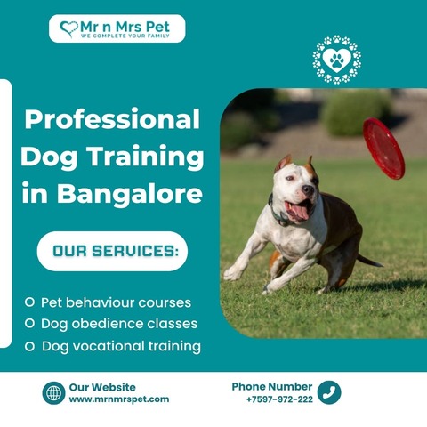 Are you looking for a Dog Training in Bangalore? Mr n Mrs Pet Professional trainers in the city offer a variety of programs tailored to meet the needs of both dogs and their owners. From basic obedience training to advanced behavioral modifications, skilled trainers utilize positive that foster a strong bond between you and your furry friend. If you want to get your pet Dog Training in Bangalore, then contact the expert trainer today on our given number +91- 7597-972-222.