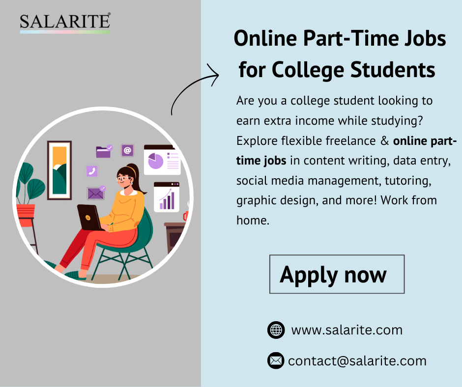 Looking for flexible online part-time jobs in Jaipur, Rajasthan? Salarite offers the best remote job opportunities for college students, allowing you to earn while you study. Whether it's freelance writing, online tutoring, data entry, social media management, or graphic designing, there are plenty of roles to fit your skills and schedule. Work from home, set your own hours, and gain valuable experience for your future career.