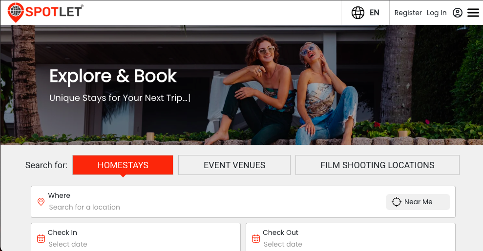 SpotLet is India’s go-to discovery and booking platform designed to help you find unique filming locations, event venues & stays — all under one digital roof. The platform bridges the gap between creators and property owners, offering handpicked, character-filled spaces that go beyond the ordinary.