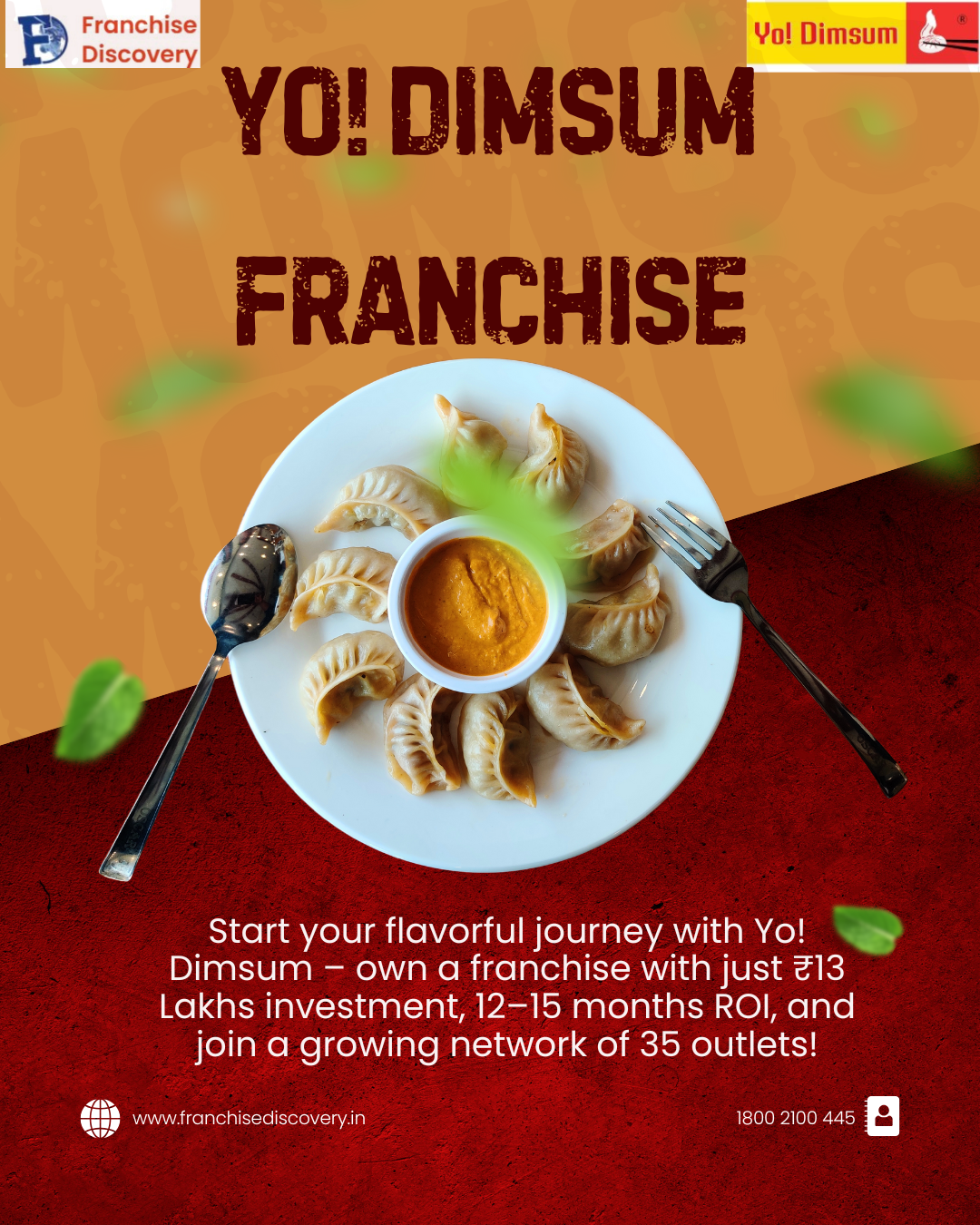 Start your flavorful journey with Yo! Dimsum – own a franchise with just ₹13 Lakhs investment, 12–15 months ROI, and join a growing network of 35 outlets!