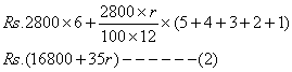 At the end of 6 month, first instalment of Rs. 2800 will amount to