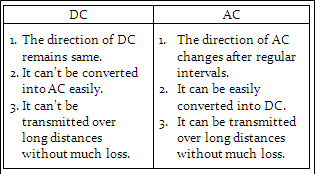 Flemming's Left Hand Rule If we stretch our thumb, fore finger and the middle finger of our left hand mutually perpendicular and if the fore finger represents the direction of magnetic field and the middle finger represents the direction of current then the thumb represents the direction of motion in conductor. Electric motor A motor is the device which converts electrical energy into mechanical energy. It has a shaft which rotates continuously when current is passed through it. It is used in electric fans, mixer grinder, etc. Principle of electric motor When a rectangular coil of copper wire is placed in a magnetic field and current is passed through it, a force acts on the coil which rotates it continuously. Electromagnetic induction. The production of electric current by moving a straight conductor in a magnetic field is called electromagnetic induction. It is the production of electricity from magnetism. Flemming's Right Hand Rule. If we stretch our thumb, fore finger and the middle finger of our right hand mutually perpendicular and if the fore finger represents the direction of magnetic field and the thumb represents the direction of motion in conductor then the middle finger represents the direction of induced current in the conductor. Electric generator A generator is a machine which is used to generate electric current by converting mechanical energy into electrical energy. There are two types of generators - alternating current (AC) generator and direct current (DC) generator. Principle of electric generator When a coil of copper wire is moved in a strong magnetic field, a current is induced in the coil. Earthing The appliances that have metallic body (like electric iron, toaster, refrigerator, etc.) are connected with green wire which provides a low resistance conducting path for the current and keeps the body of appliance at the potential of the earth. This is called earthing. Earthing is done to save ourselves from electric shocks. Electric fuse The device having a short length of thin wire which is made of alloy lead and tin is called fuse wire or electric fuse. It has a very low melting point. It melts and breaks the circuit if the current exceeds the safe value. Fuse wire is connected in series in the circuit.
