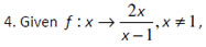 5. Show that the function f : x → x/x-1, x#1 has an inverse function that maps onto its self.