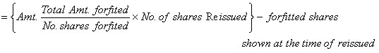 REISSUE OF SHARES:--When the company Forfeiture the above calculated shares then the next step is to reissue that particular shares and that shares which were Not REISSUED are SHOWN in LIABILITIES side of B/S .The journal entry is.