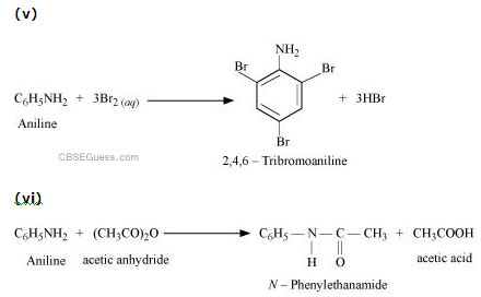 (iii) Due to the −R effect of the benzene ring, the electrons on the N- atom are less available in case of aromatic amines. Therefore, the electrons on the N-atom in aromatic amines cannot be donated easily. This explains why aliphatic amines are stronger bases than aromatic amines.