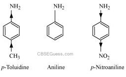 In p-toluidine, the presence of electron-donating −CH3 group increases the electron density on the N-atom.