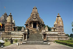 Khajuraho, the name signifies the place where a lot of Khajur trees could be found. The place is a small town located in the Bundelkhand region of Madhya Pradesh in India famed for a complex of exquisite Hindu and Jain temples. Built during the reigns of the mighty Chnadela rulers in the 9th and 10th century, carvings on these temples are highly erotic and sensual depicting in graceful forms intimate scenes of the whole range of human emotions and relationshipsThe temples at Khajuraho are beautiful pieces of art. The artist's creative instincts have been beautifully captured in various facets and moods of life in stone.