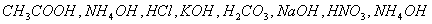 - Choose a strong acid, weak acid, strong base and weak base: