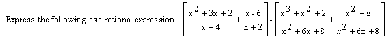 Q. 63. Q. 64. Simplify: ( X / X-Y) - (Y / X+Y ) – ( 2XY / X2) - (Y2 ) OrSimplify: Q. 65. Solve for x: Q. 66. Simplify: Q. 67. Reduce the following rational number to its lowest terms