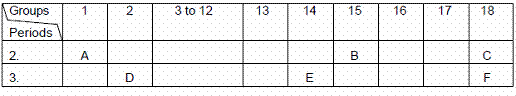 Q. 24. The following table shows the position of six elements A, B, C, D, E and F in the periodic table.