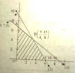 The corner points of the shaded region are O(0, 0), A(0, 7.5), B(9/4, 45/8) and C(6, 0).