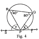 In Fig. 4, SPT is a tangent to the circle at P and PQ is a chord of the circle. If