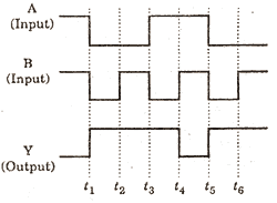Q. 12. The following figure shows the input waveforms (A, B) and the output waveform (Y) of a gate. Identify the gate and write its truth table. 2