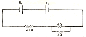 Q. 12. Two cells E1 and E2 in the given circuit diagram have an emf of 5 V and 9 V and internal resistance of respectively. 2